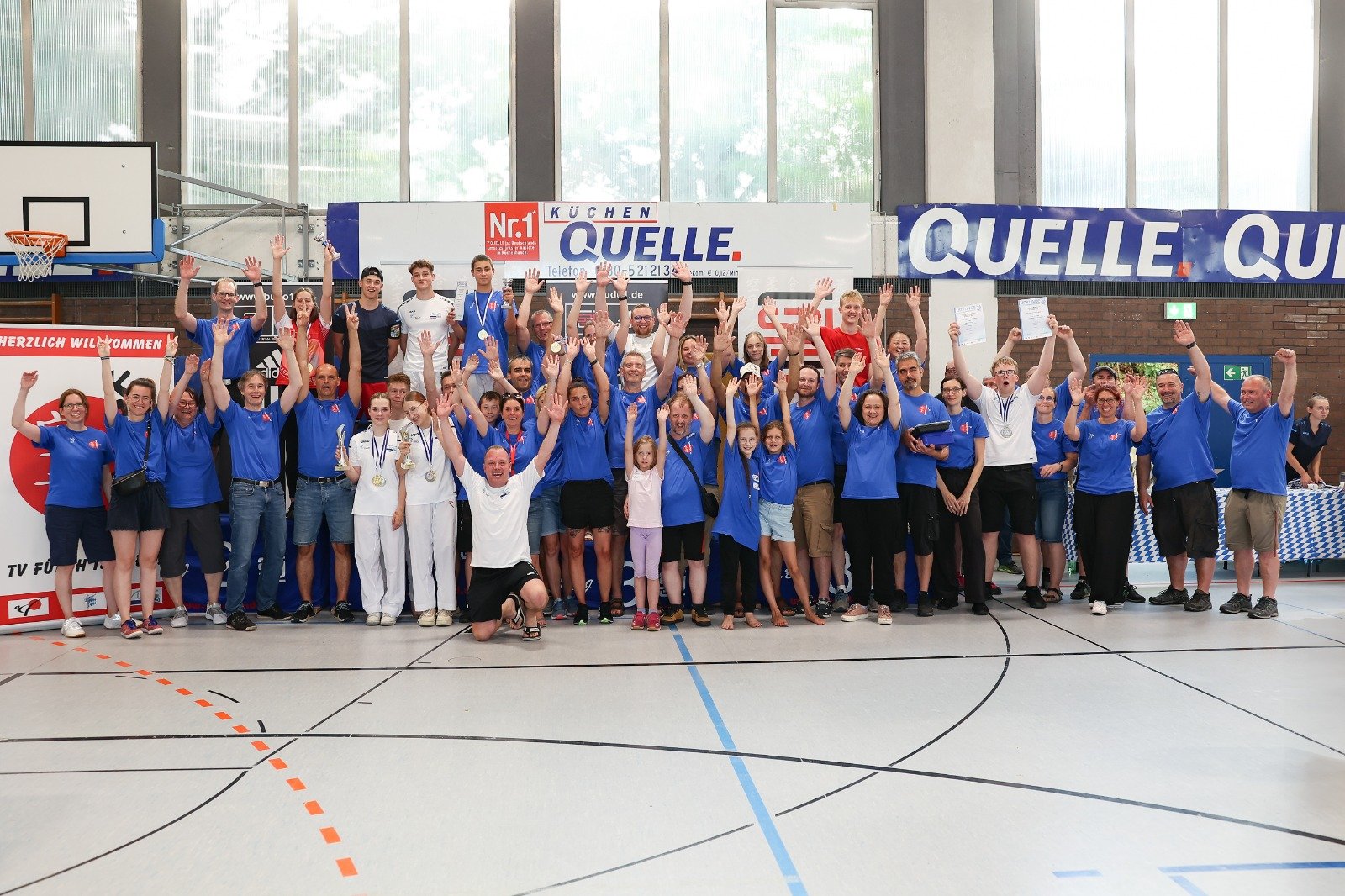 Fürth, den 08.07.2023 - Nach vierjähriger Pause war die Karate-Abteilung des TV Fürth 1860 e.V. wieder einmal Gastgeber für die Bayerischen Meisterschaften der Kinder, Jugend, Junioren und U21. Fast 50 helfende Abteilungsmitglieder, Eltern und Freunde sorgten zusammen mit der vom Bayerischen Karate Bund (BKB) gestellten Wettkampfkommission für einen gelungenen Wettkampftag. Unter der Leitung unseres Leistungssportwarts Dennis Schnauder sowie der Catering-Chefin Sylvia Batz trugen unsere zahlreichen Helferinnen und Helfer maßgeblich zum Gelingen der Veranstaltung bei.