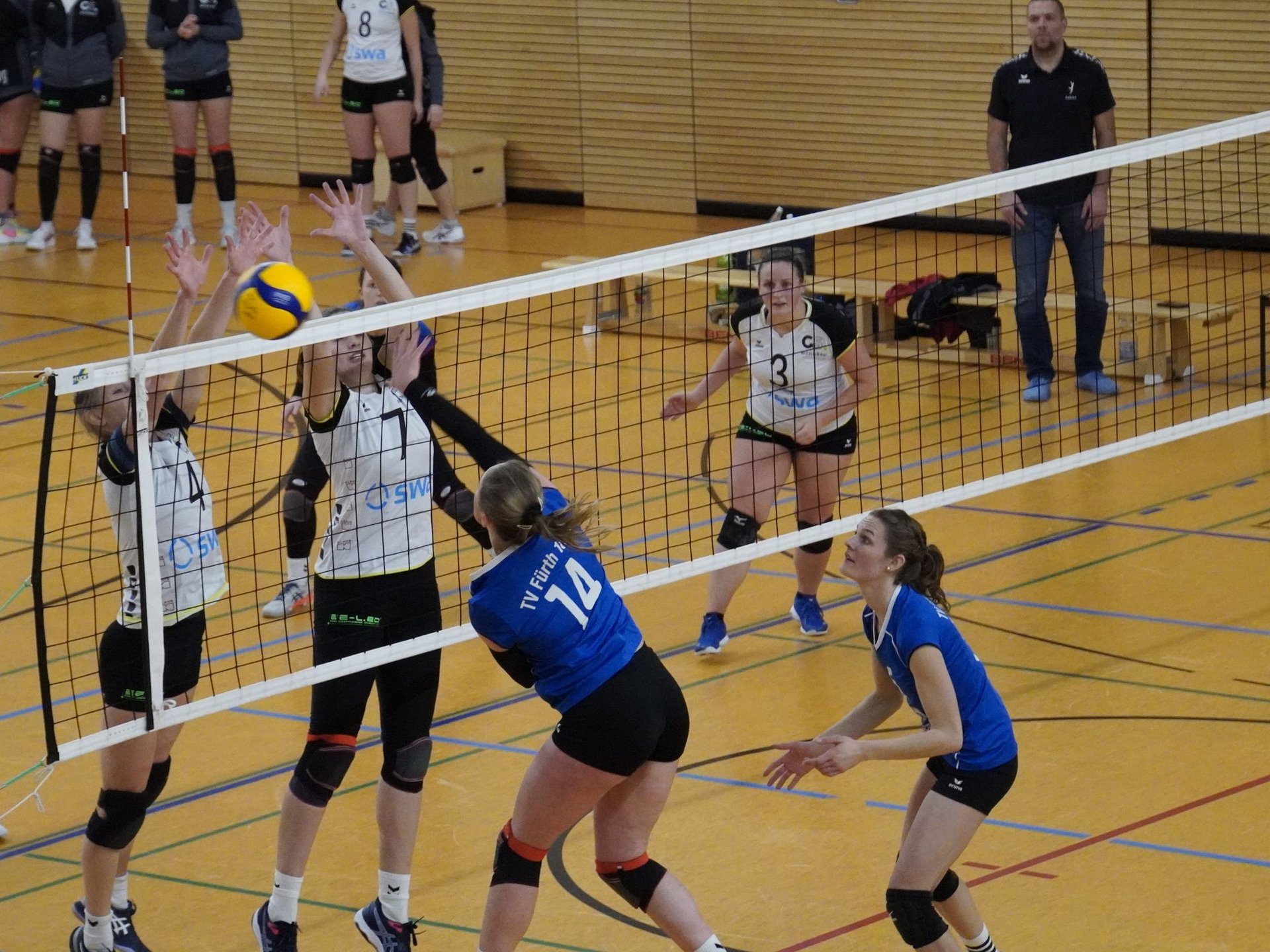 So stand auch der Ausgang des vierten Satzes auf Messersschneide. Die Fehlerzahl nahm auf beiden Seiten stetig zu. Jedoch konnten die Fürtherinnen gerade längere Ballwechsel zu eigenen Punktgewinnen nutzen und sich dadurch zum Ende des vierten Satzes entscheidend durchsetzen.