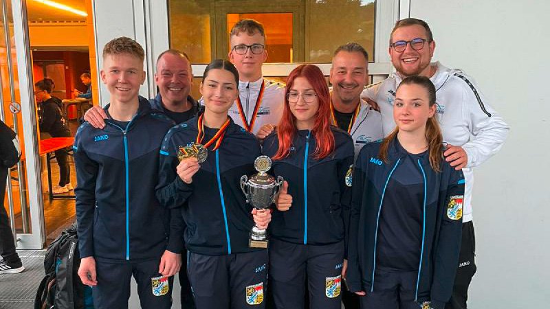 Nach den Einzeldisziplinen folgten die Teamwettbewerbe, bei denen im Modus „best of three“ gekämpft wurde. Eine Mannschaft bestand aus drei Kämpfern*innen. Vanessa, Nastya und Luca traten als Mitglieder*innen von Kampfgemeinschaften aus Franken („KG Franken“) an.