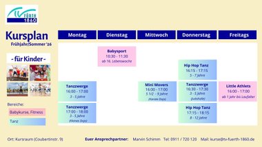 Alle Informationen über Ihre gewünschten Kurse zu den Trainingsinhalten, Trainingszeiten und Trainingsort findet ihr hier:
