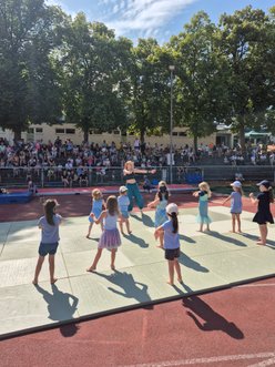 Es gab beeindruckende Sportvorführungen aus den Sportabteilungen Turnen, Tanzen, Karate und Fechten und zum Mitmachen ein schweißtreibendes und spannendes Quattroball-Turnier. Die kleinsten tobten sich an den etlichen Spielestationen aus. Das Gelände wurde aber nicht nur zu einem Spielplatz für Kinder, auch Erwachsene haben sich an der Reaktionswand (t-Wall 64) von der AOK und der Live-Musik von “Package of three” (Saitenspinner) vergnügt. Für Essen und Getränke zu kleinen Preisen war stets für das leibliche Wohl an diesem sonnigen Tag gesorgt.